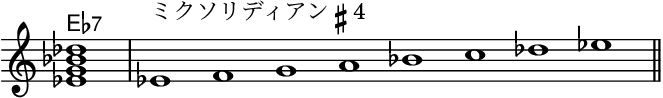 対応するスケールは、ミクソリディアンやミクソリディアン♯4であろう。 また、関係コードとして ♭VIIm7 が先行することがある。