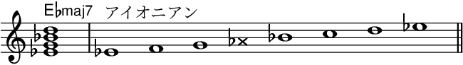 いずれも対応するスケールは、アイオニアンまたはリディアン