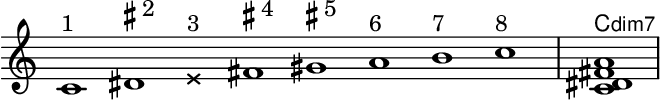 よって、リディアン♯2♯はディミニッシュ・コードに対応するスケールのひとつといえるが、実際に想定される機会はほとんどなく、またテーマメロディのときに限られるだろう。