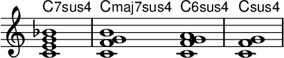 コード・シンボルは、完全4度に変化させる前のコード・シンボルに対して「sus4」を加える。