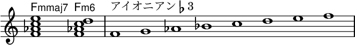 なお、メロディがルート(階名「ファ」)のとき、メジャー・キーにおけるサブドミナント・マイナーは、IVmmaj7 ではなく IVm6 が用いられる。 なぜなら、メロディとコード・トーンの長7度が短2度または短9度を生じるからである。