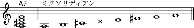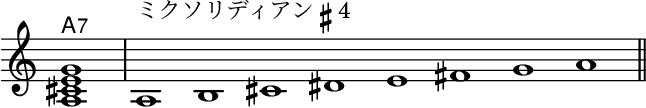 対応するスケールは、フリジアン♯3オルタード・スケールミクソリディアンミクソリディアン♯4などがある。 また、代理コードとして、トライトーン代理 ♭III7 がある。