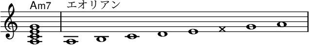 VIm7 の代表的な和声的機能は、トニック・メジャー Imaj7(I6)の代理コードである。 このとき、対応するスケールはエオリアンである。